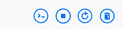 First opens a terminal (we will need that in a minute), second stops/starts the container, next restarts and delete (only if the container has been stopped before).